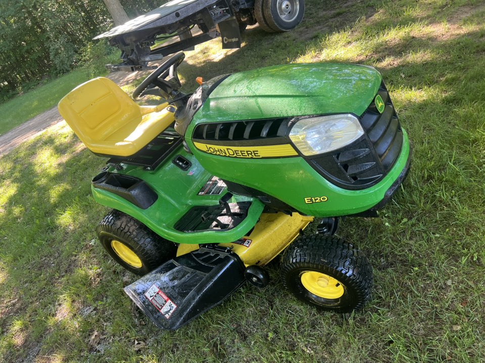 Owners like the comfortable seat, easy deck height adjustment, and the reliable mid-PTO clutch for the 42-inch mower deck or optional snow blower. Common complaints include the deck belt jumping off if tensioners aren’t adjusted correctly, and the occasional electrical quirks like low battery output if the charging system isn’t kept clean. Overall, the E120 stands out as a solid step up from the most basic E110, offering just enough power and convenience to handle seasonal chores without overwhelming newer operators. It’s a good, dependable residential mower if maintained well — and when it’s time to upgrade, the E120 holds its resale value because so many homeowners trust the John Deere name.